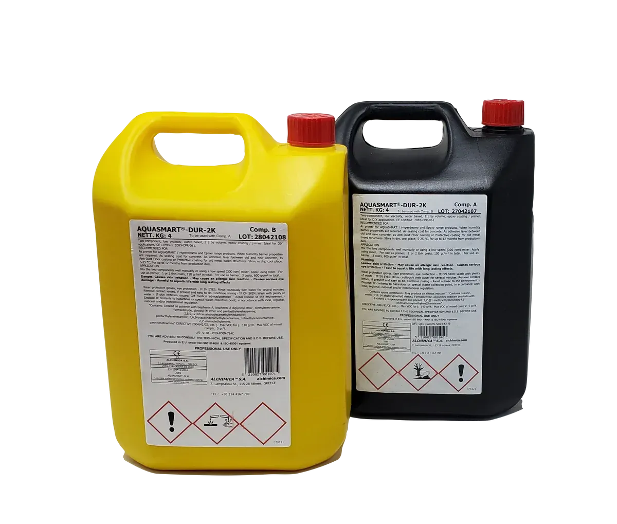 Introducing AQUASMART®-DUR, a state-of-the-art epoxy-based primer and coating developed by the Alchimica research and development laboratory. This innovative two-component, water-based epoxy coating is specially designed for optimal application in a 1:1 volume ratio, enabling users to efficiently utilize even minimal quantities while allowing for future storage.