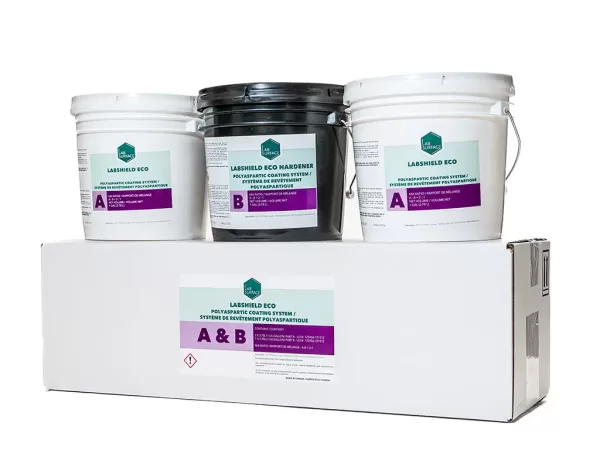 The LABSHIELD® ECO is a virtually odor-free, 100% solids, two-component (2A:1B), and non-yellowing polyaspartic for concrete floor coating, commonly used with vinyl flakes. The colored LABSHIELD® ECO serves as the base coat, while the clear version is used as a protective topcoat, both sharing a common hardener. LABSHIELD® ECO offers two variations (Ultra-Fast Set (-) and Prolonged Working Time (+)). LABSHIELD® ECO provides an optimal work time/cure time ratio. The utilization of the LABSHIELD® ECO allows the installation of a full floor system in one single day, with rapid return to service. The product displays excellent curing capability even at very low temperature levels. It offers superior mechanical and chemical properties, is low maintenance, and exhibits a superior aesthetic finish with excellent UV stability, making it optimal for both interior and exterior applications. We recommend using LABTEC vinyl chips in combination with LABFAST®/LABSHIELD® ECO products. Two- or three-coat systems can be considered.